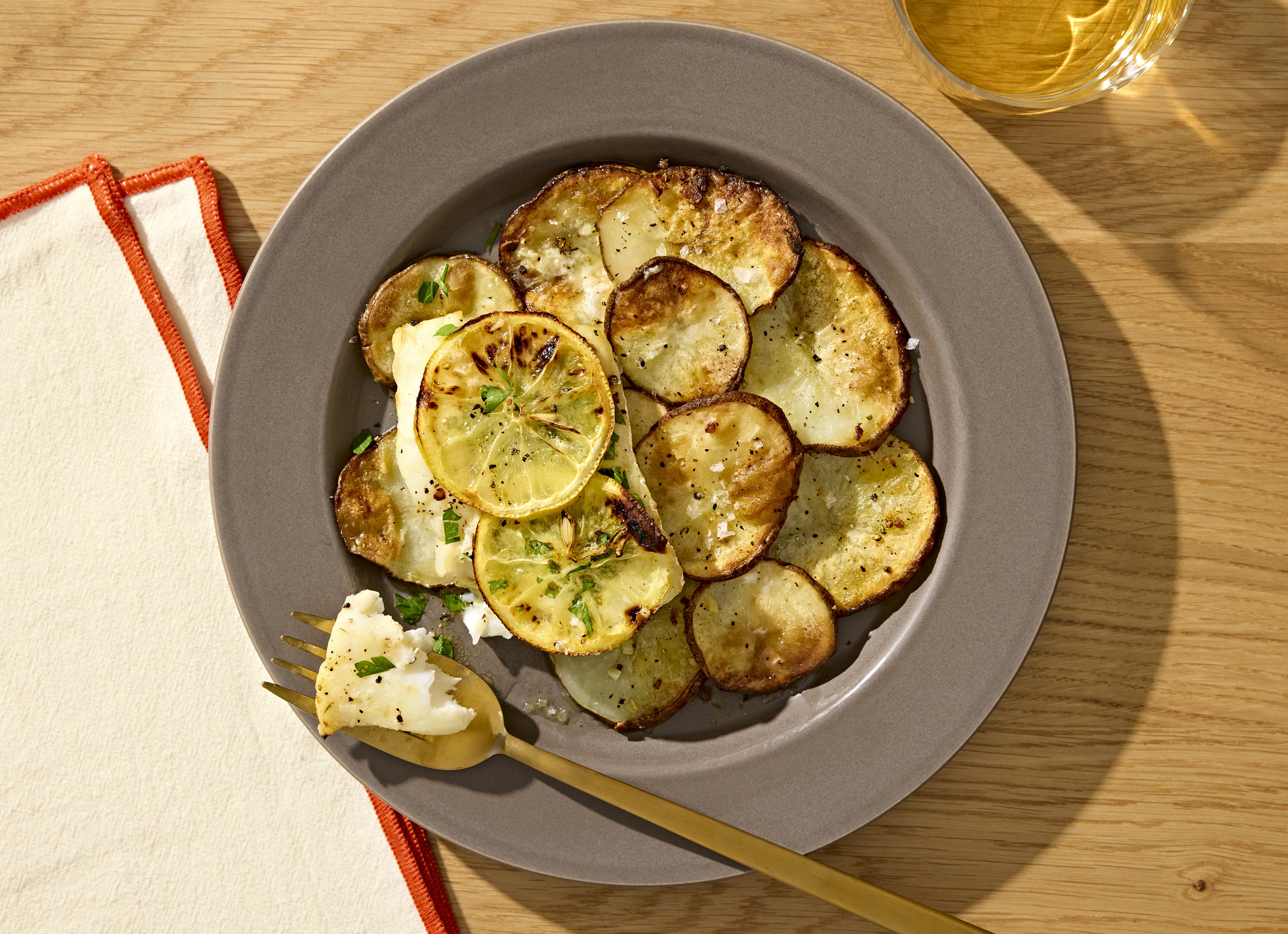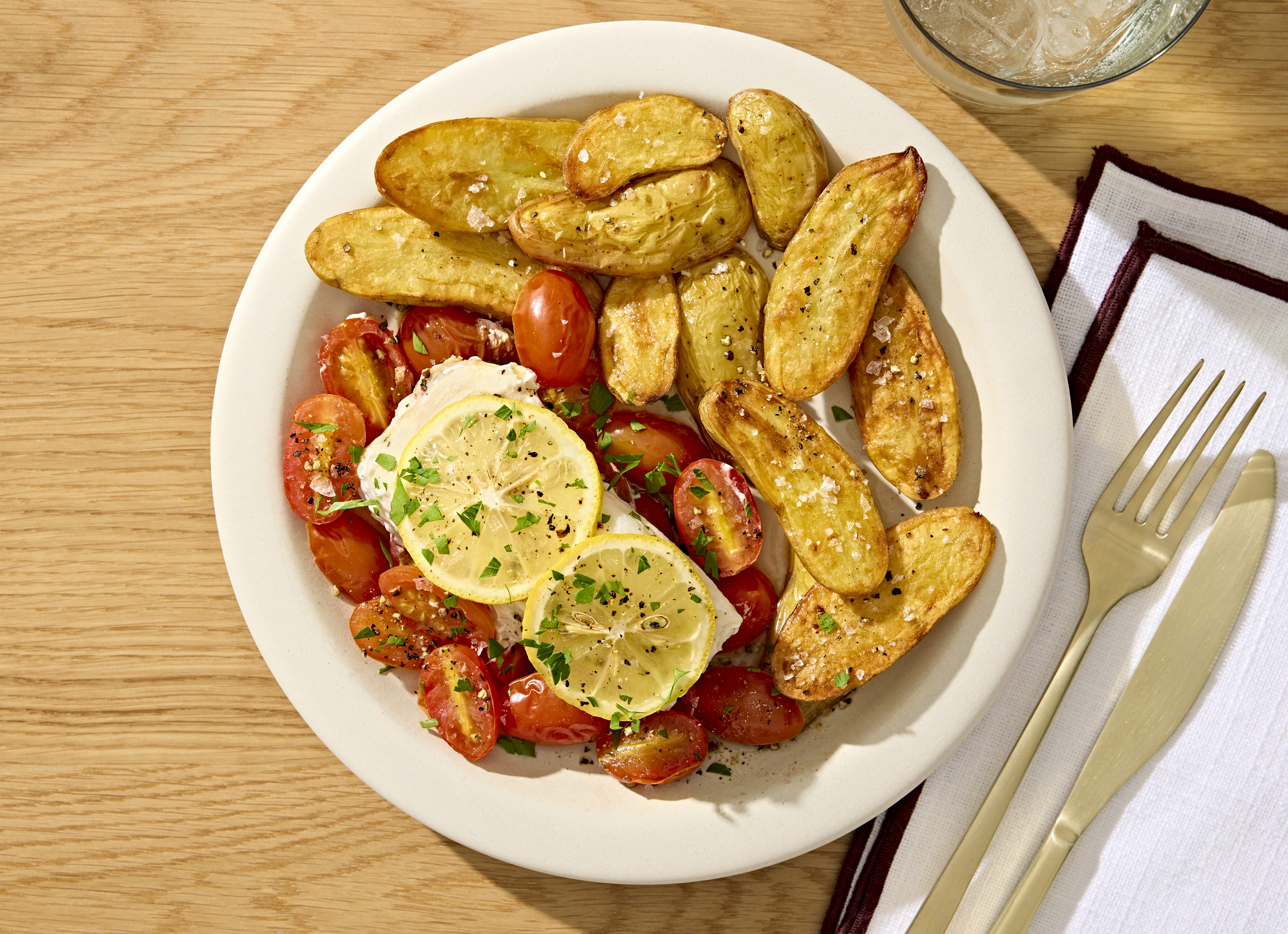Lemon-Poached Halibut with Roasted Fingerling Potatoes