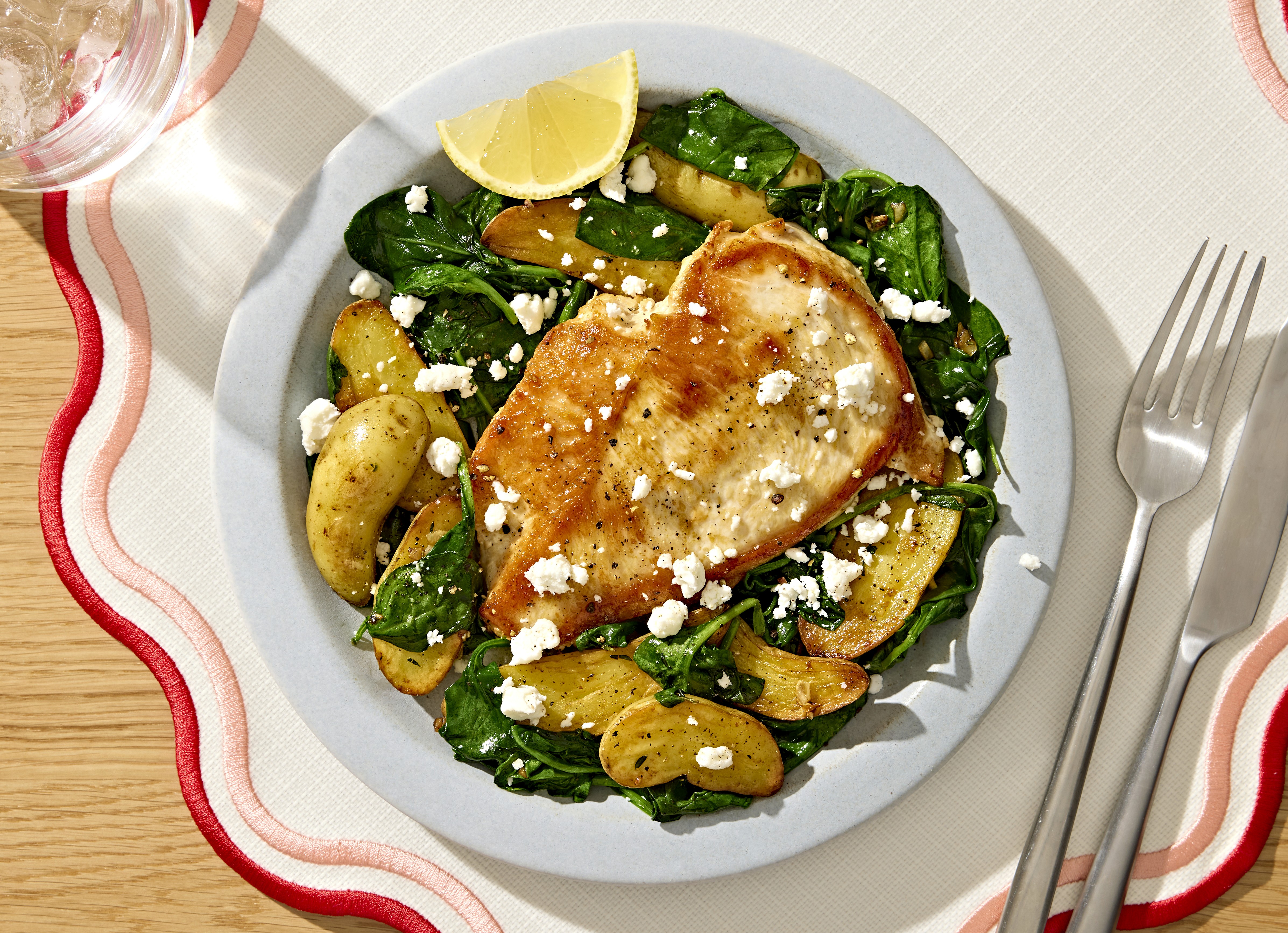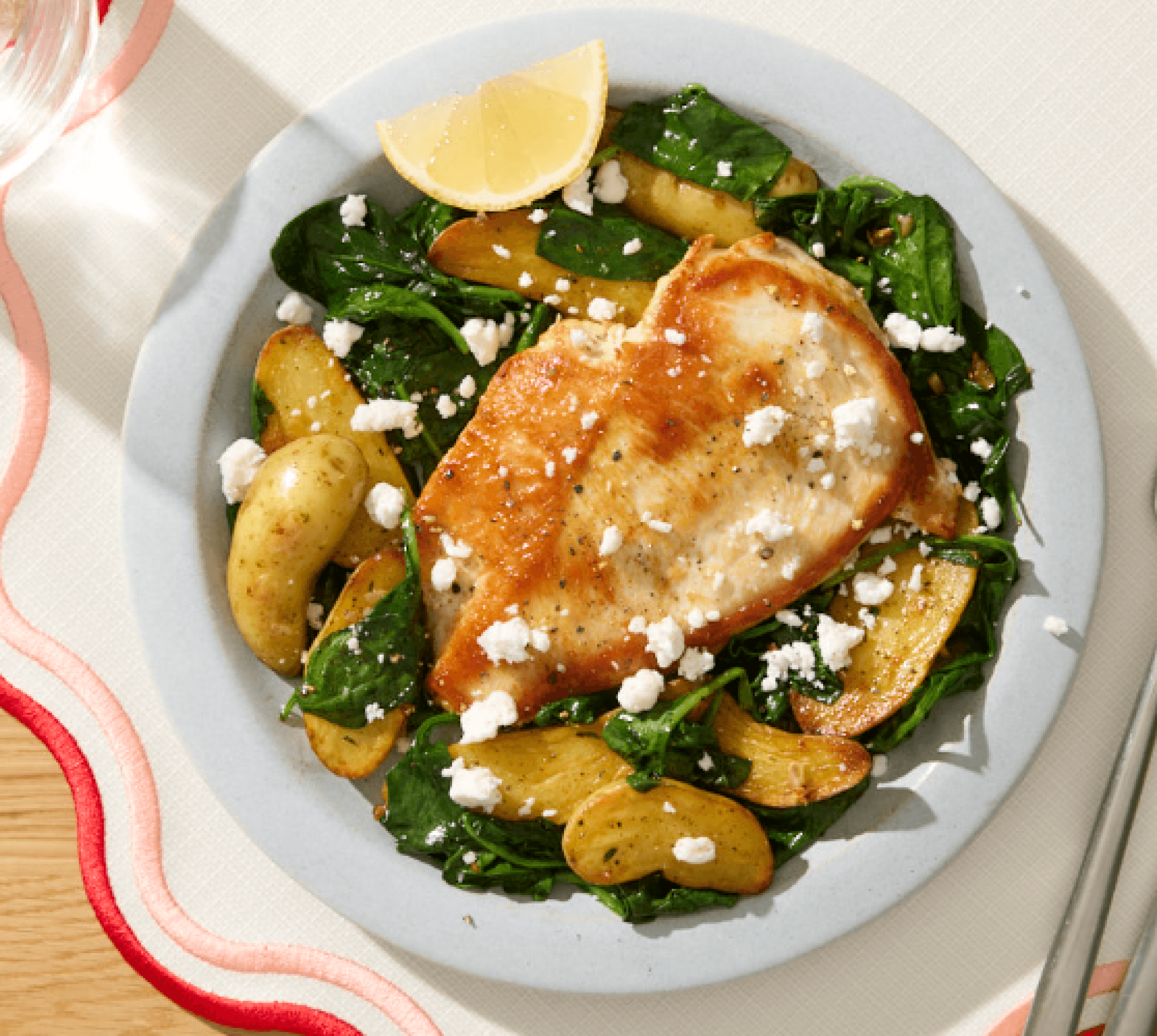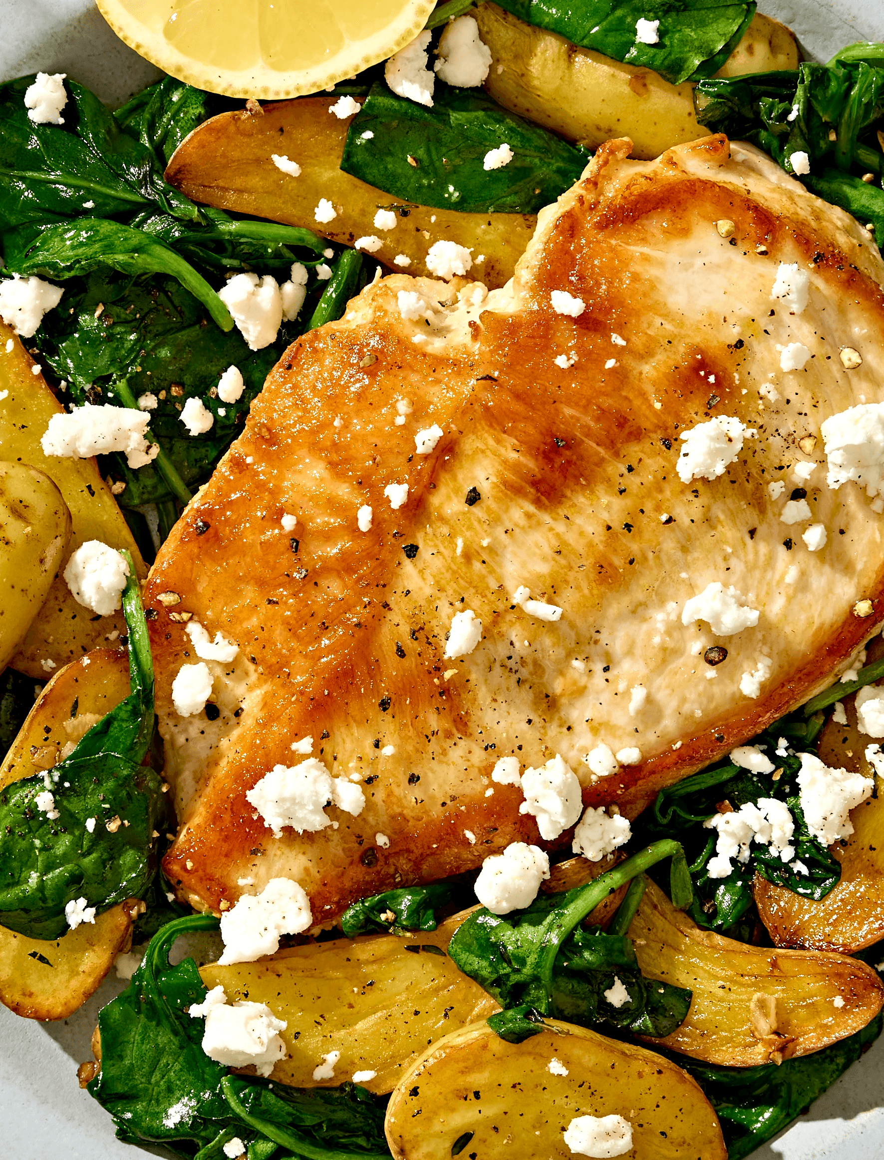 Lemony Chicken with Wilted Spinach + Potatoes