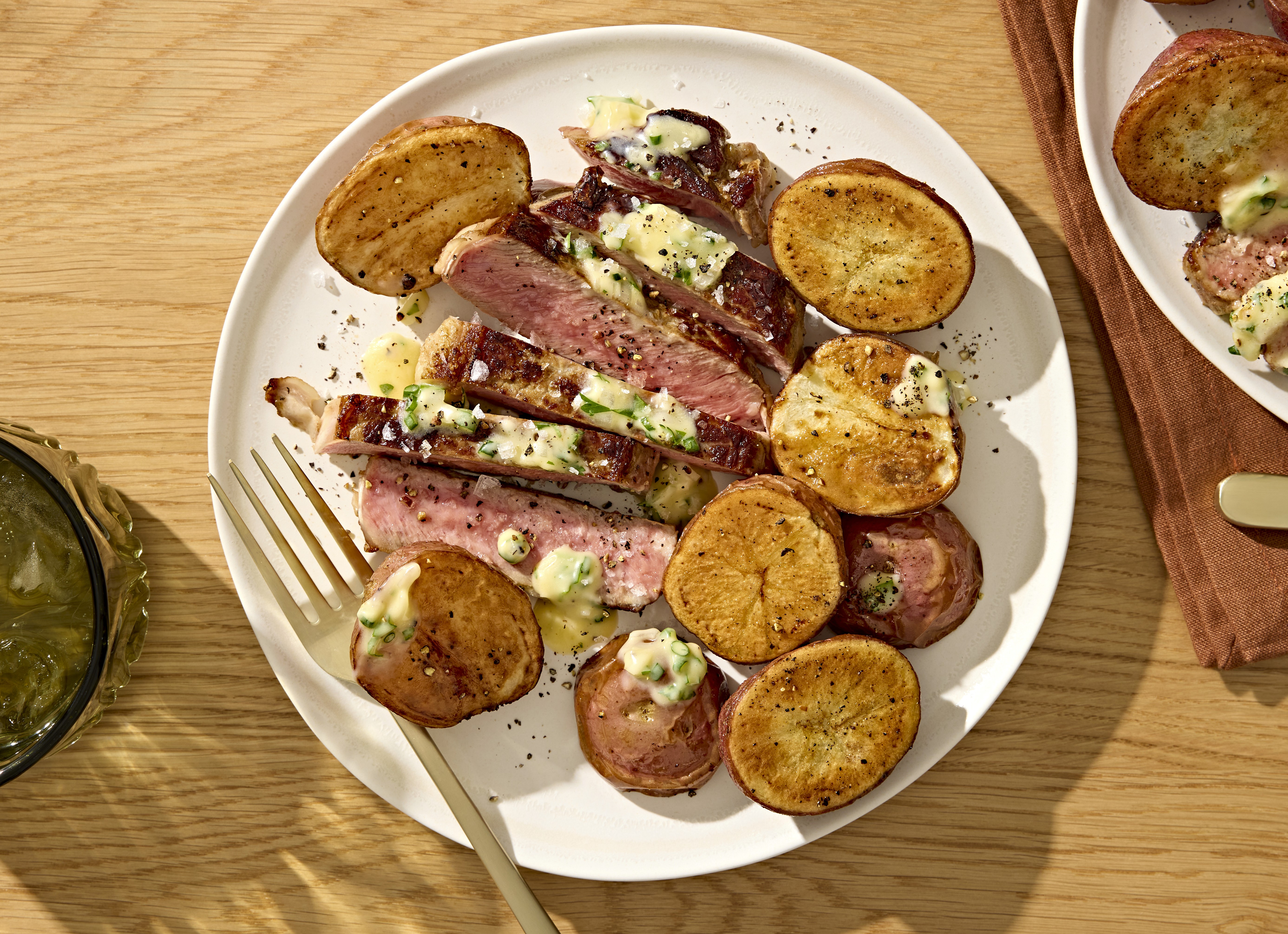 Cast Iron Steaks with Herb Butter + Roasted Potatoes