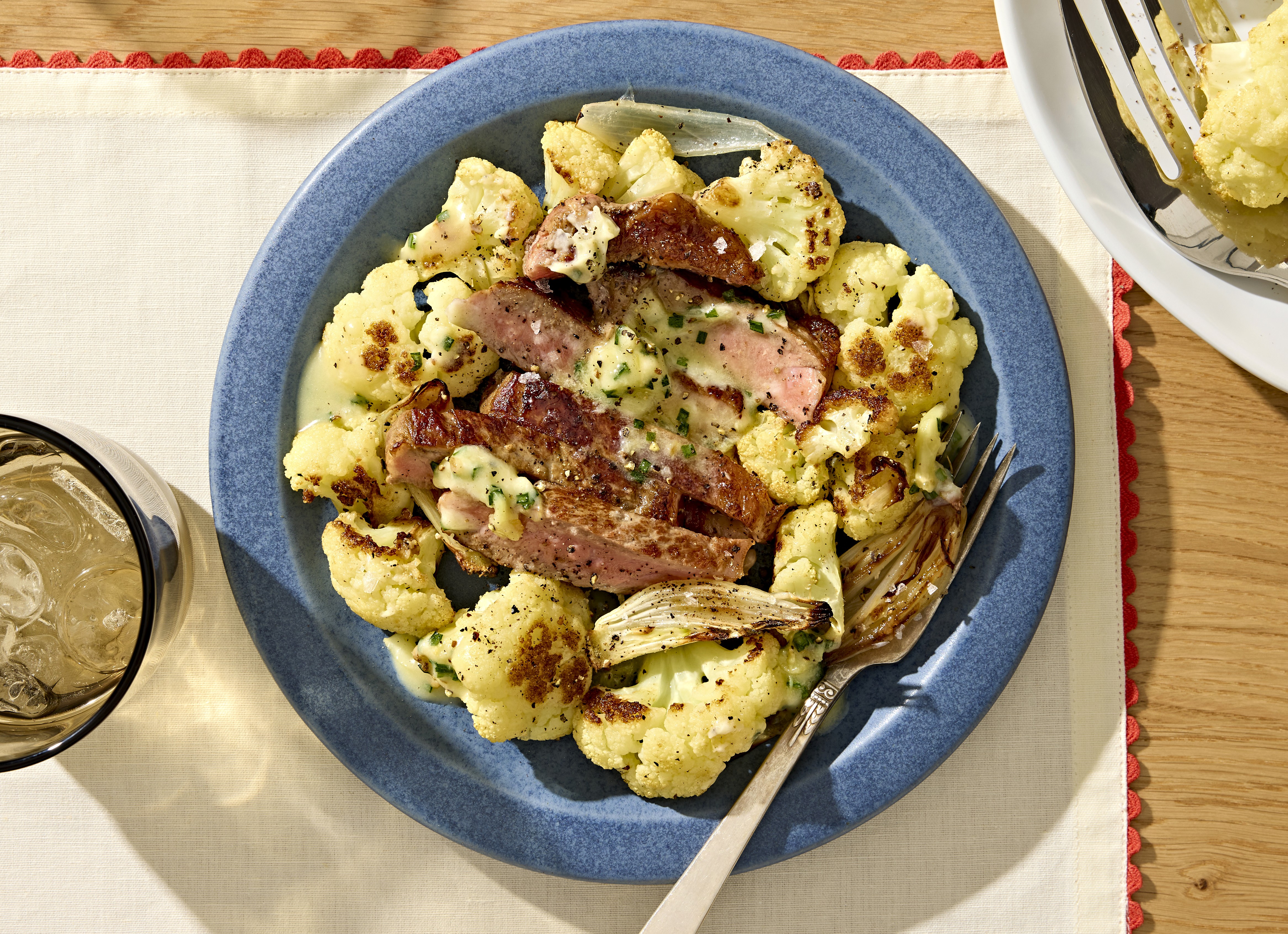 Strip Steaks with Cauliflower + Roasted Garlic Butter